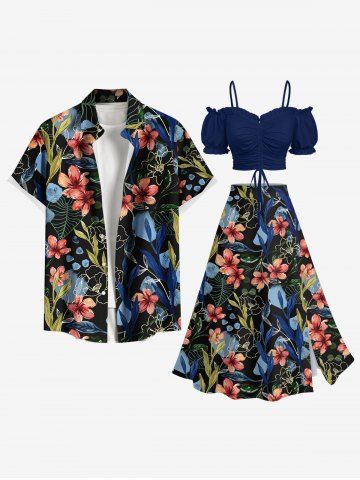 Plus Size Flowers Leaf Print Split Hawaii Skirt - Black - 2x