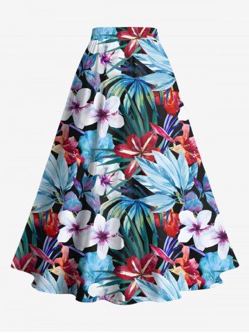 Graphic Skirts > Plus Size Flowers Leaf Tropical Print Split Hawaii Skirt