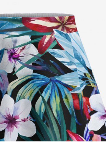 Plus Size Flowers Leaf Tropical Print Split Hawaii Skirt - Black - 6x