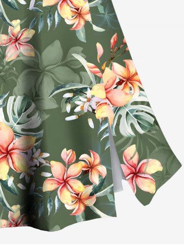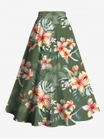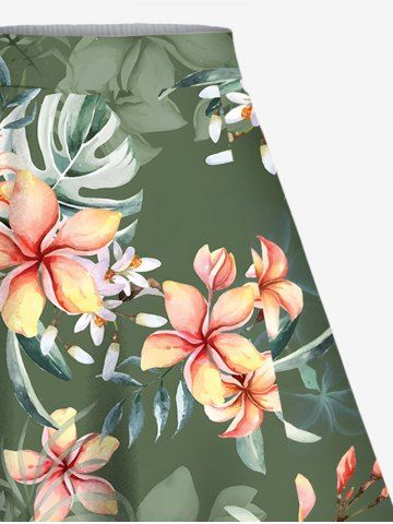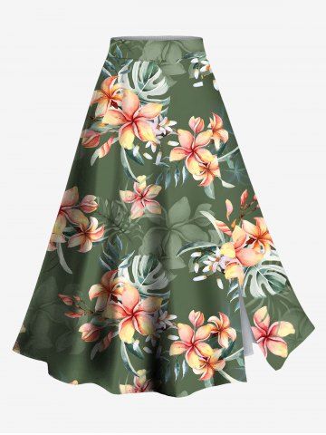 Plus Size Flowers Tropical Leaf Print Split Hawaii Skirt - Green - L