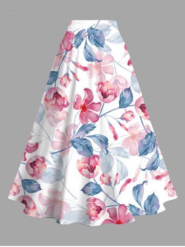 Plus Size Flowers Tropical Leaf Print Split Hawaii Skirt - White - 4x