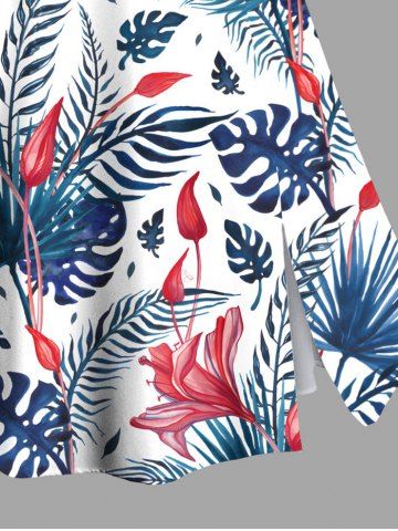 Plus Size Flowers Tropical Leaf Print Split Hawaii Skirt - Blue - 6x