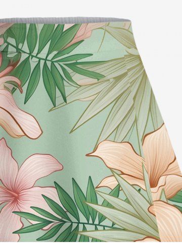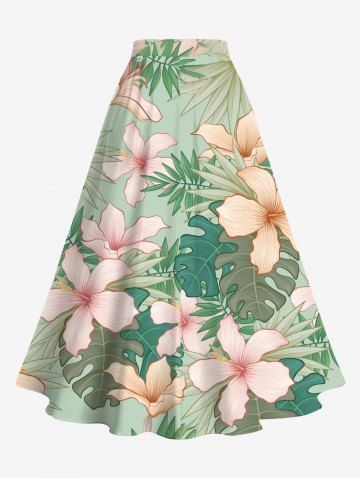 Graphic Skirts > Plus Size Flowers Tropical Leaf Print Split Hawaii Skirt
