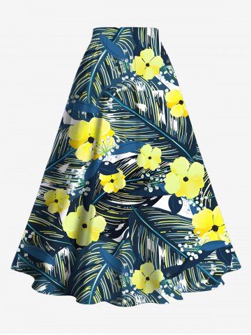 Graphic Skirts > Plus Size Flowers Tropical Leaf Print Split Hawaii Skirt