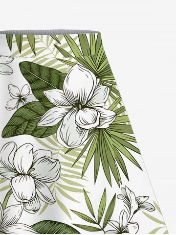 Plus Size Flowers Tropical Leaf Print Split Hawaii Skirt - Green - 5x