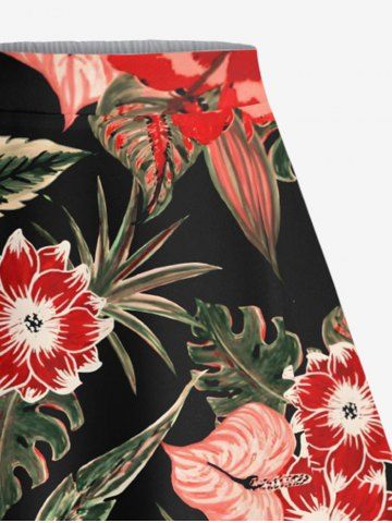 Graphic Skirts > Plus Size Hibiscus Flower Tropical Leaf Print Split Hawaii Skirt