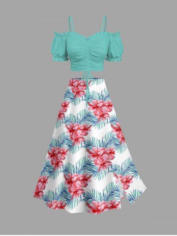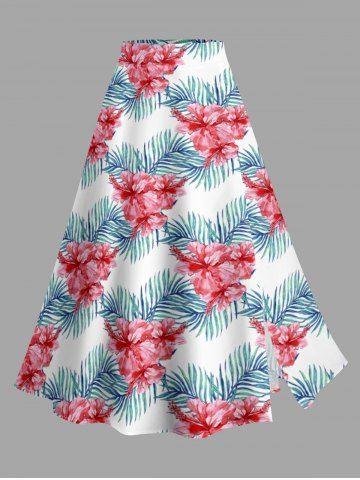 Graphic Skirts > Plus Size Hibiscus Flower Tropical Leaf Print Split Hawaii Skirt