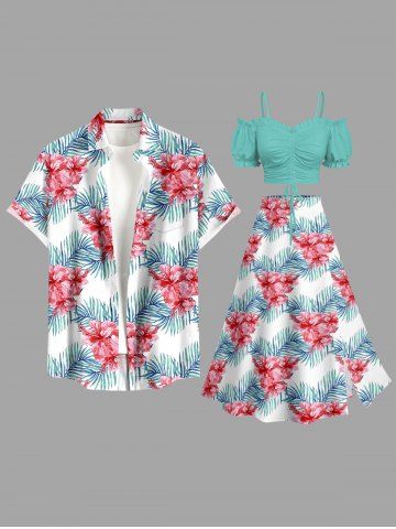 Graphic Skirts > Plus Size Hibiscus Flower Tropical Leaf Print Split Hawaii Skirt
