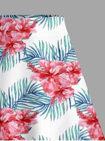 Plus Size Hibiscus Flower Tropical Leaf Print Split Hawaii Skirt - Hot Pink - M