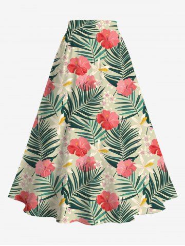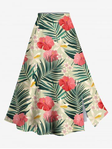Graphic Skirts > Plus Size Hibiscus Flower Tropical Leaf Print Split Hawaii Skirt