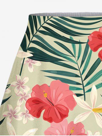 Graphic Skirts > Plus Size Hibiscus Flower Tropical Leaf Print Split Hawaii Skirt