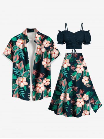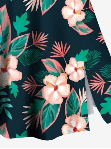 Plus Size Hibiscus Flowers Leaf Print Split Hawaii Skirt - Black - 3x