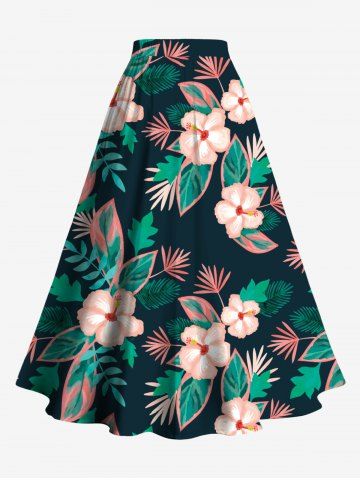 Graphic Skirts > Plus Size Hibiscus Flowers Leaf Print Split Hawaii Skirt