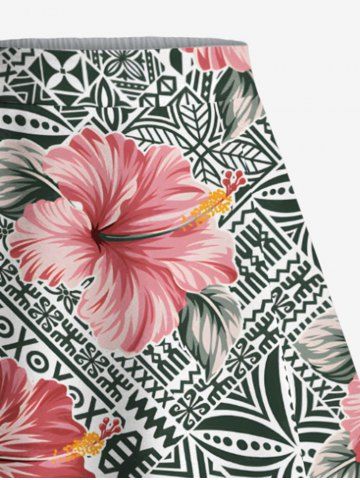 Plus Size Hibiscus Flowers Leaf Print Split Hawaii Skirt - Black - M