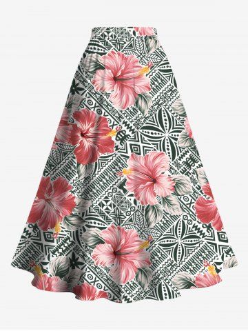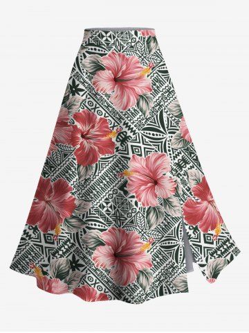 Graphic Skirts > Plus Size Hibiscus Flowers Leaf Print Split Hawaii Skirt