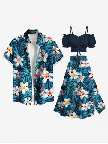 Graphic Skirts > Plus Size Hibiscus Flowers Tropical Leaf Print Split Hawaii Skirt