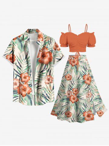 Graphic Skirts > Plus Size Hibiscus Flowers Tropical Leaf Print Split Hawaii Skirt