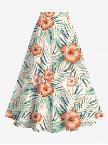 Graphic Skirts > Plus Size Hibiscus Flowers Tropical Leaf Print Split Hawaii Skirt