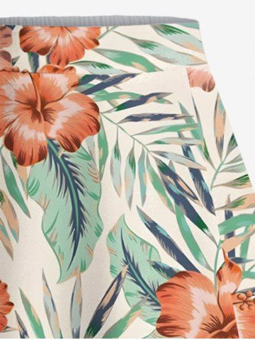 Graphic Skirts > Plus Size Hibiscus Flowers Tropical Leaf Print Split Hawaii Skirt