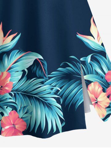 Plus Size Hibiscus Flowers Tropical Leaf Print Split Hawaii Skirt - Navy Blue - L