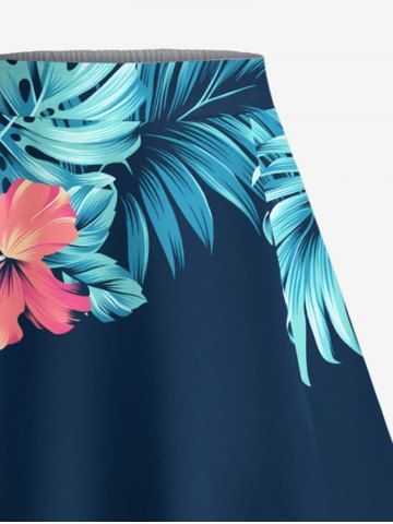 Plus Size Hibiscus Flowers Tropical Leaf Print Split Hawaii Skirt - Navy Blue - 5x