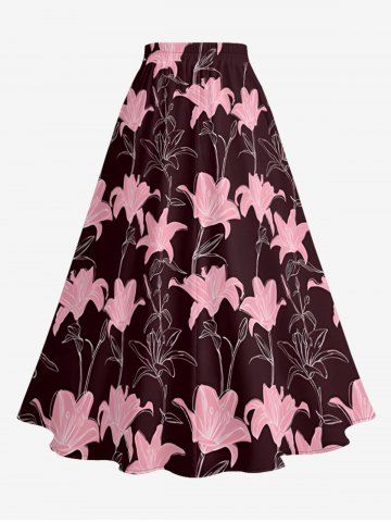 Graphic Skirts > Plus Size Lily Flower Print Hawaii Split A Line Skirt