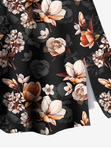 Plus Size Ombre Flower Branch Print Hawaii Split A Line Skirt - Black - Xs