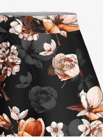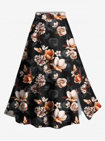 Plus Size Ombre Flower Branch Print Hawaii Split A Line Skirt - Black - 5x