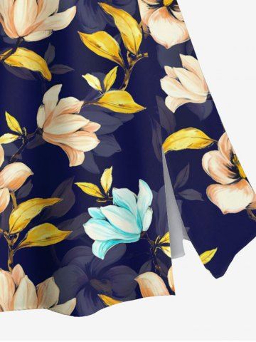 Plus Size Ombre Flower Leaf Branch Print Hawaii Split A Line Skirt - Navy Blue - 3x