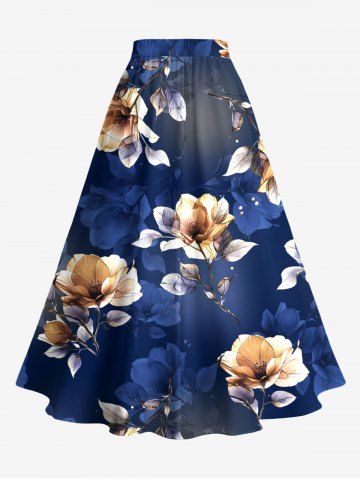Graphic Skirts > Plus Size Ombre Flower Leaf Print Hawaii Split A Line Skirt