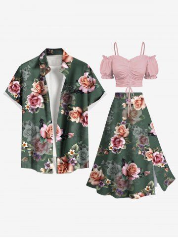 Plus Size Ombre Flower Leaf Print Hawaii Split A Line Skirt - Green - Xs