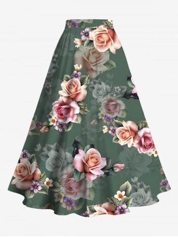 Graphic Skirts > Plus Size Ombre Flower Leaf Print Hawaii Split A Line Skirt