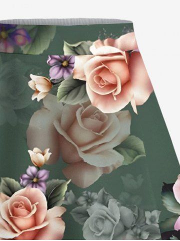 Graphic Skirts > Plus Size Ombre Flower Leaf Print Hawaii Split A Line Skirt
