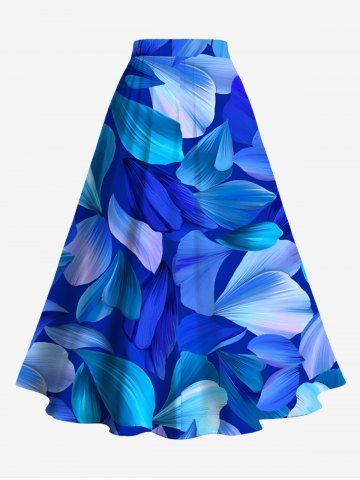 Plus Size Ombre Leaf Print Split Hawaii Skirt - Blue - 3x