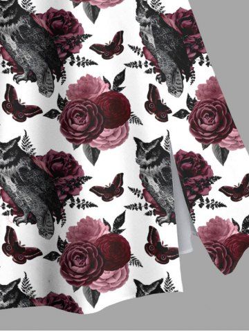 Plus Size Rose Flower Leaf Butterfly Owl Print Halloween Split A Line Skirt - Crystal Cream - M