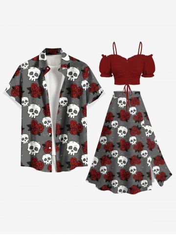 Plus Size Skull Rose Flower Print Halloween Split A Line Skirt - Dark Gray - 5x