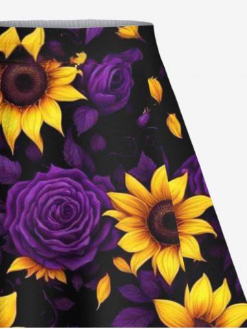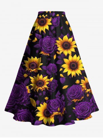 Plus Size Sunflower Rose Flower Print Hawaii Split A Line Skirt - Purple - M