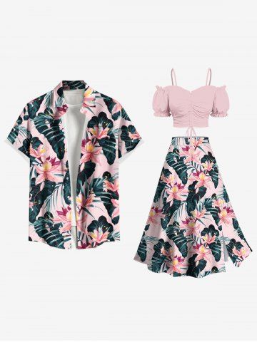 Tropical Flower Leaf Print Plus Size Matching Hawaii Beach Outfit For Couples