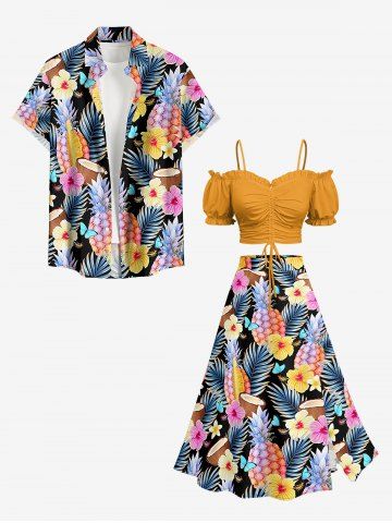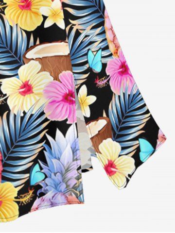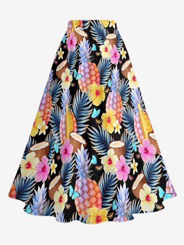 Plus Size Tropical Leaf Hibiscus Flower Pineapple Coconut Print Hawaii Split A Line Skirt - Multi - S