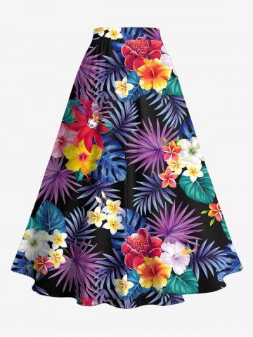 Graphic Skirts > Plus Size Tropical Leaf Hibiscus Flower Print Hawaii Split A Line Skirt