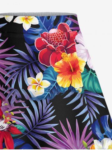Plus Size Tropical Leaf Hibiscus Flower Print Hawaii Split A Line Skirt - Concord - 1x