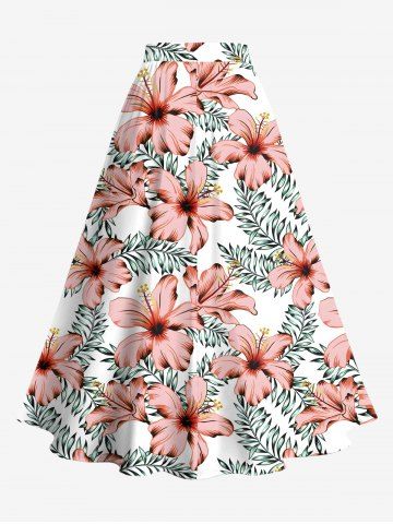 Graphic Skirts > Plus Size Tropical Leaf Hibiscus Flower Print Hawaii Split A Line Skirt