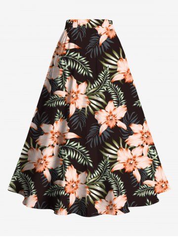 Graphic Skirts > Plus Size Tropical Leaf Hibiscus Flower Print Hawaii Split A Line Skirt