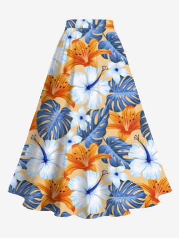 Graphic Skirts > Plus Size Tropical Leaf Hibiscus Flower Print Hawaii Split A Line Skirt