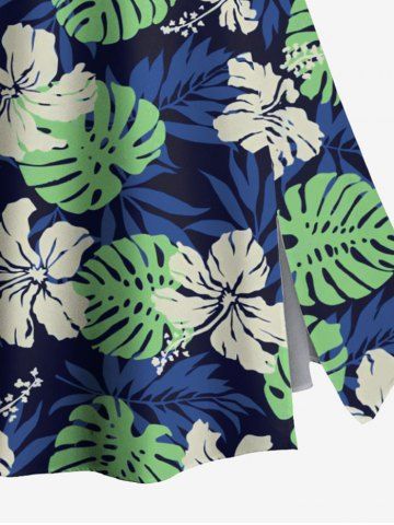 Plus Size Tropical Leaf Hibiscus Flower Print Hawaii Split A Line Skirt - Midnight Blue - 1x