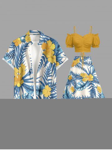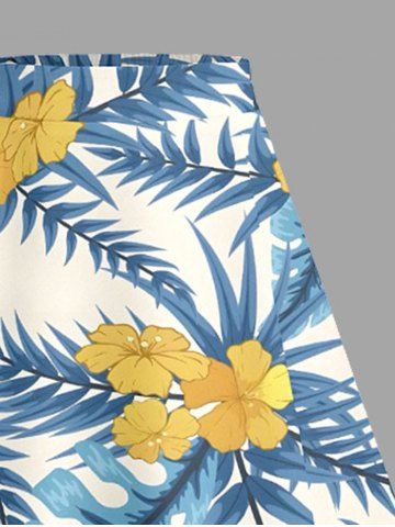 Plus Size Tropical Leaf Hibiscus Flower Print Hawaii Split A Line Skirt - Powder Blue - M