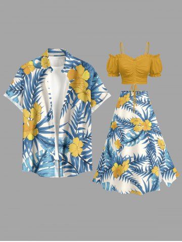 Graphic Skirts > Plus Size Tropical Leaf Hibiscus Flower Print Hawaii Split A Line Skirt