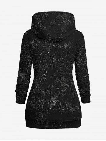 Plus Size Skull Rose Flowers Print Drawstring Pockets Hoodie - Black - 2xl
