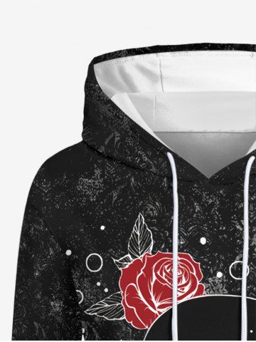 Plus Size Skull Rose Flowers Print Drawstring Pockets Hoodie - Black - 4xl