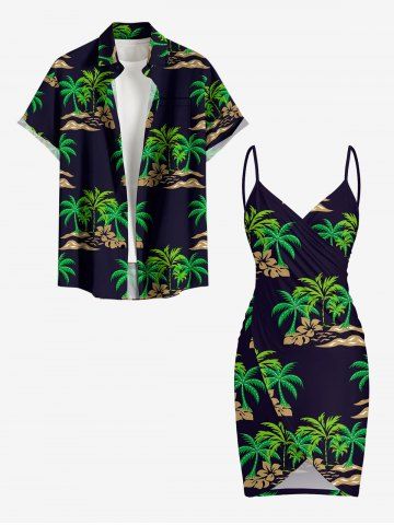 Coconut Tree Hibiscus Flower Print Hawaii Convertible Beach Cover Up - Concord - 4x